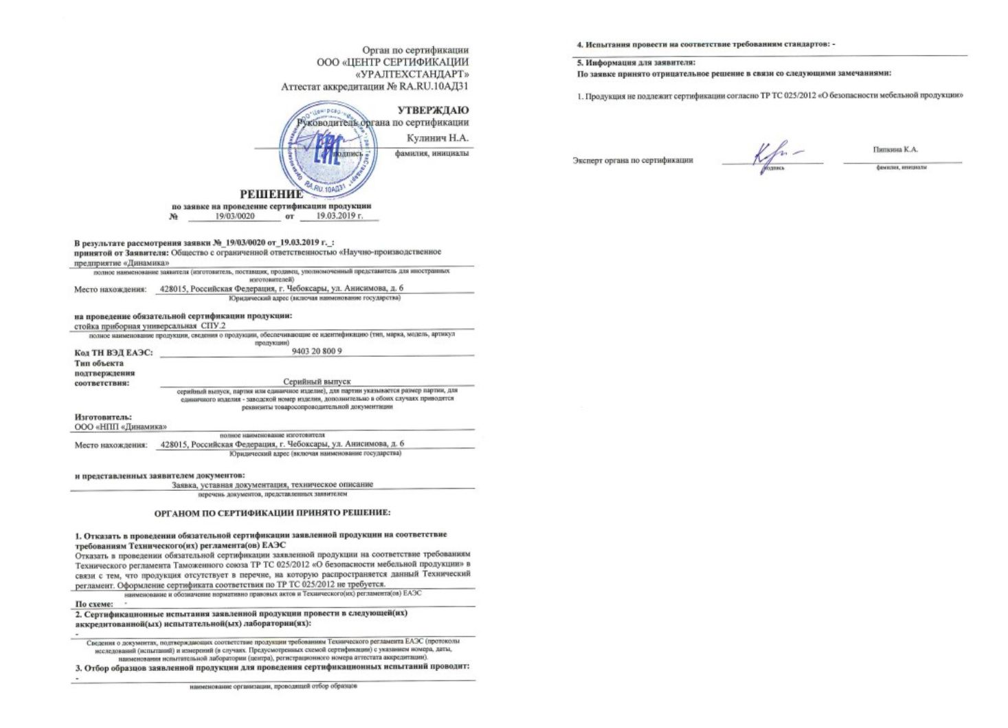 СПУ не подлежит обязательной сертификации на соответствие требованиям технического регламента ТР ТС 025/2012, а значит может без ограничений распространяться и эксплуатироваться как в России, так и на территории других стран-участниц Таможенного Союза.