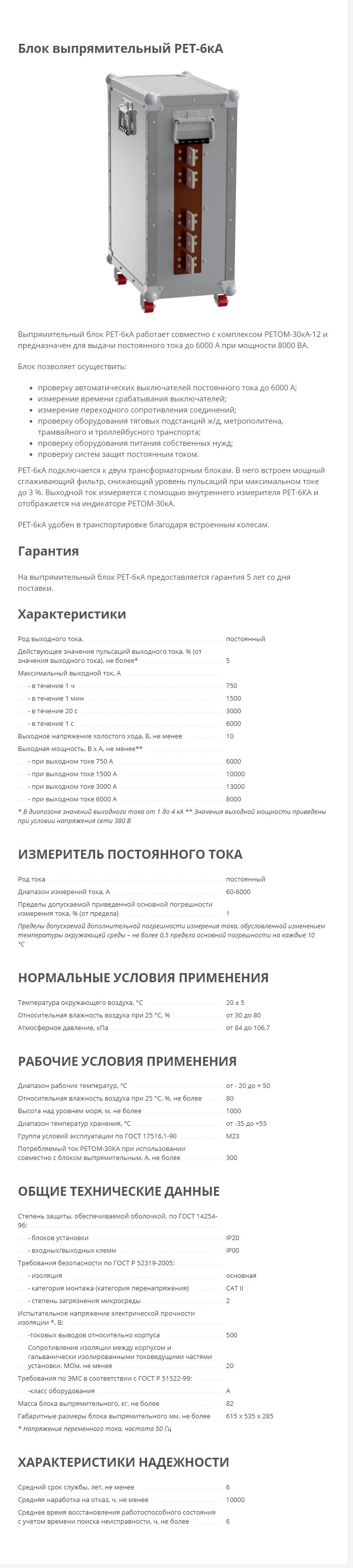 - выходной регулируемый постоянный ток до 6000 А (при использовании блока РЕТ-6кА);