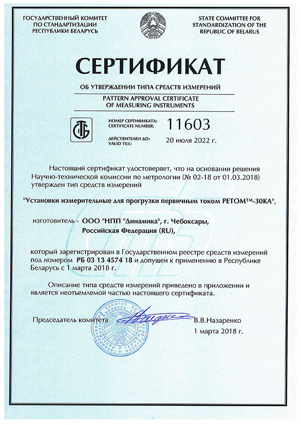 Испытательный комплекс РЕТОМ-30кА внесен в реестры средств измерений России, республик Беларусь и Казахстан.