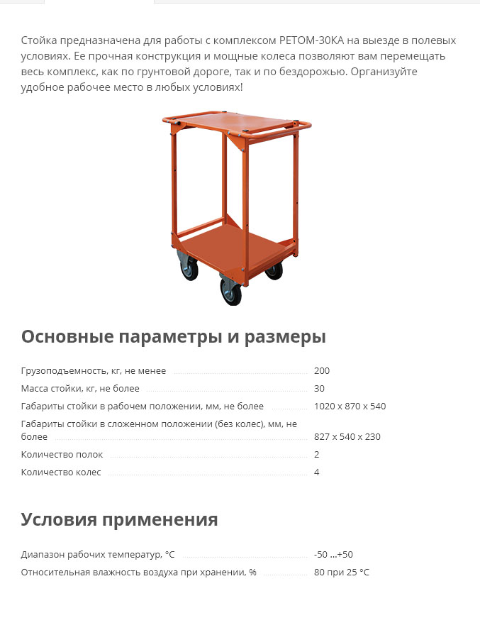- передвижная разборная стойка предназначена для транспортировки комплекса вместе с аксессуарами к месту проведения испытаний;