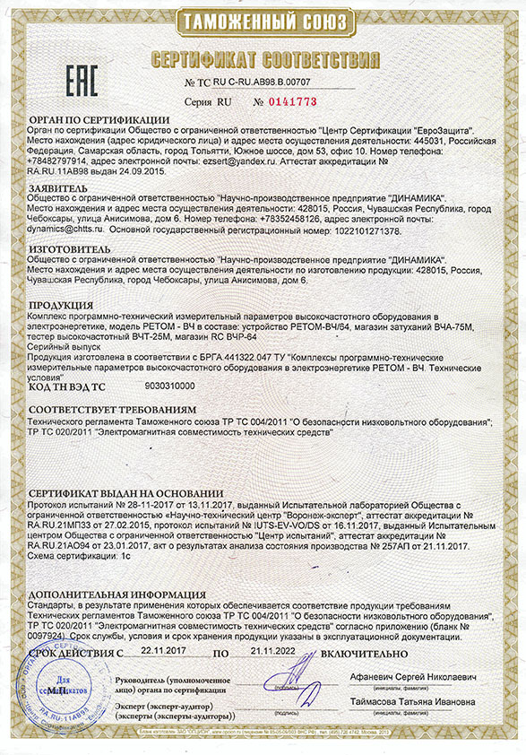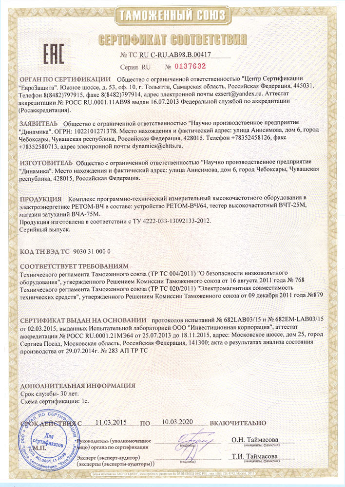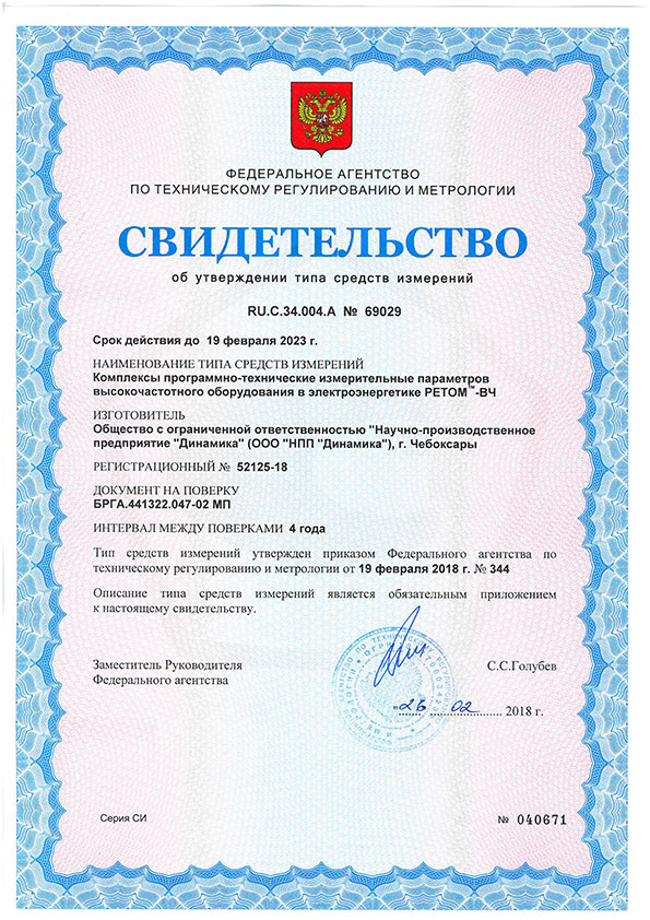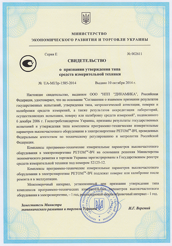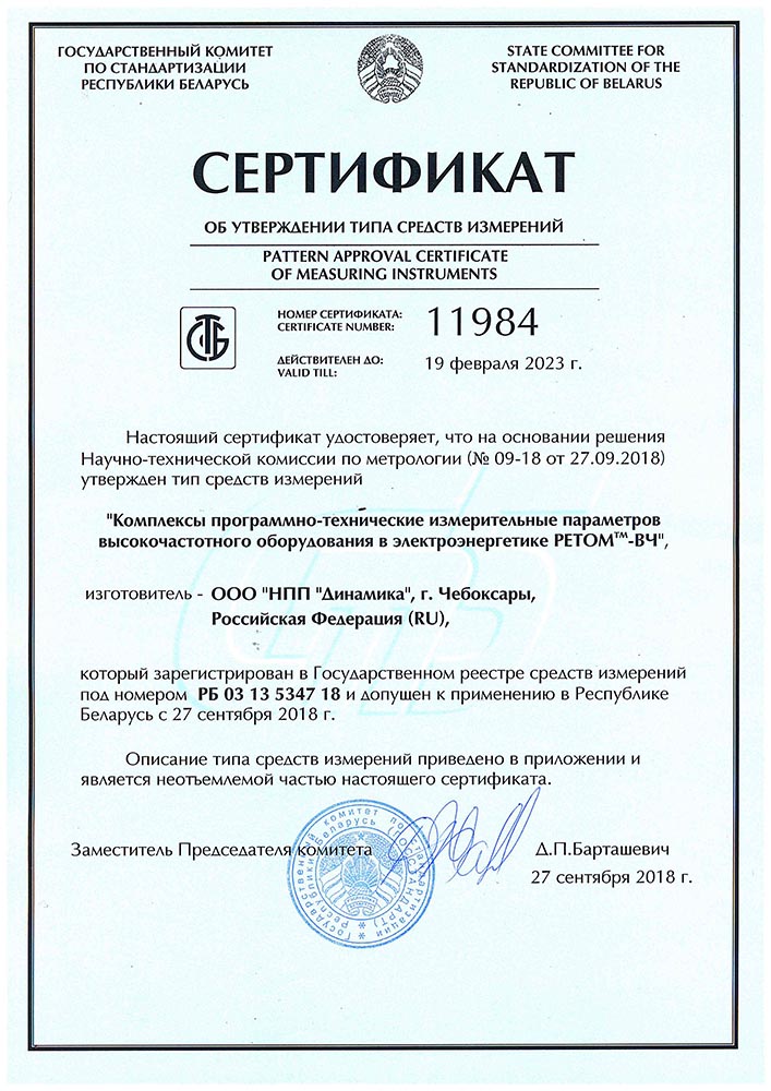 Испытательный прибор РЕТОМ-ВЧ/64 внесен в реестры средств измерений России, республик Беларусь и Казахстан.